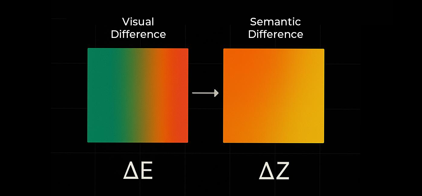 Delta Z is the metric that measures semantic difference — how far two colors are in meaning, not appearance.
